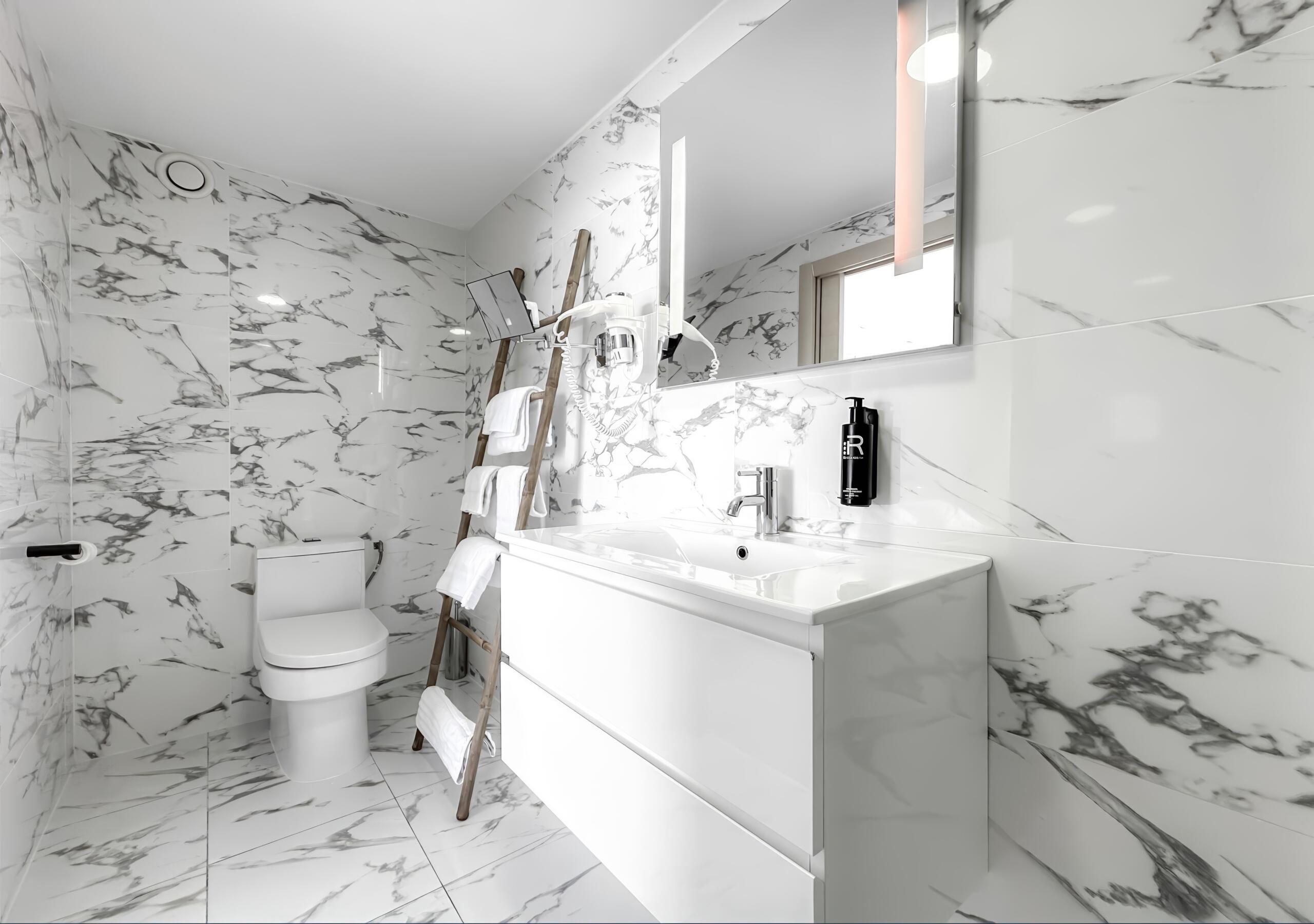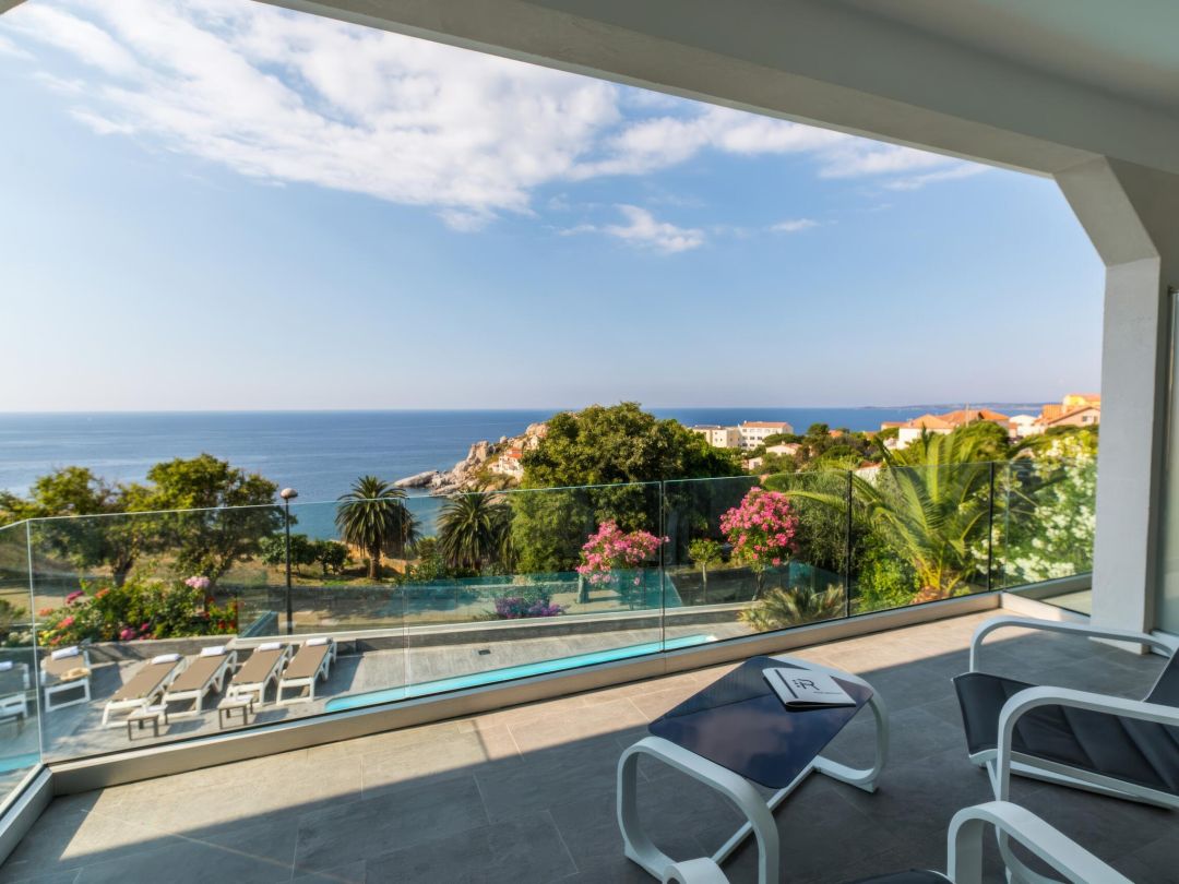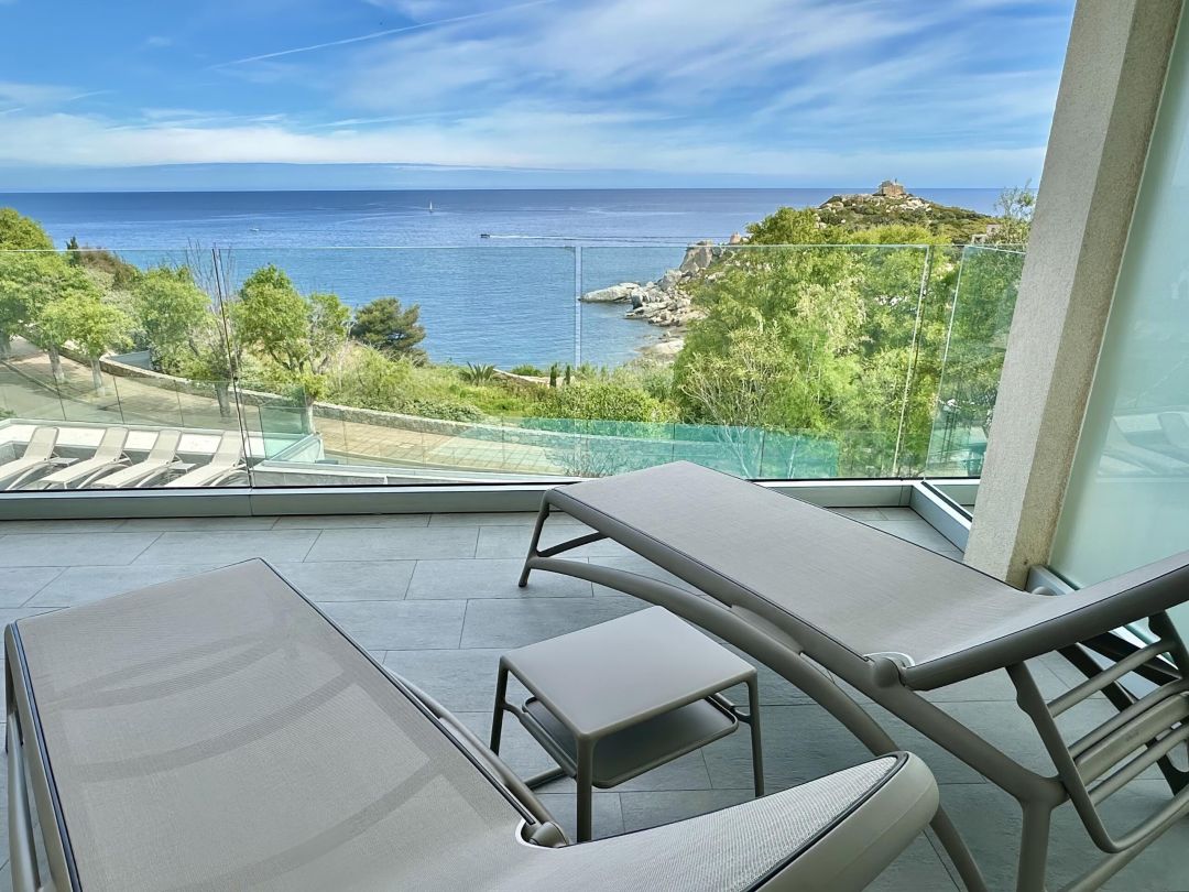 Notre catégorie la plus exclusive. Situées à l'étage de la villa, ces chambres offrent une grande terrasse avec transats, idéale pour profiter du soleil et de la vue en toute intimité. Un espace élégant et spacieux, pensé pour un séjour unique et privilégié.